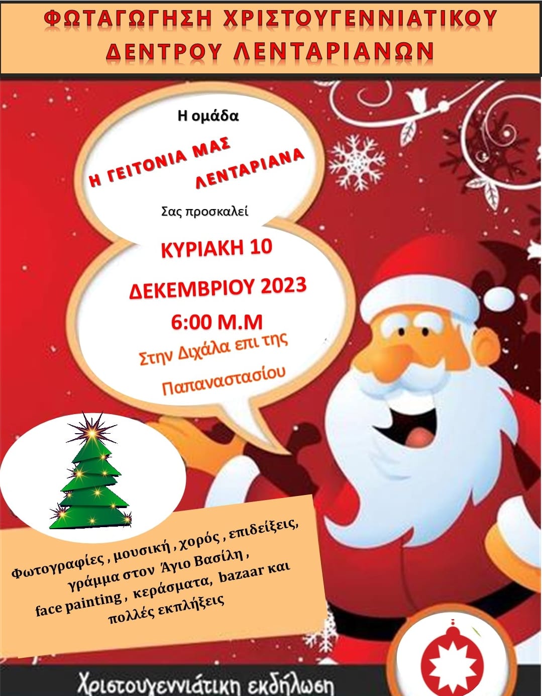 Η εθελοντική ομάδα των Λενταριανων σας προσκαλεί να ξεκινήσει τό πνεύμα τών Χριστουγέννων από την γειτονιά μας.. για τά παιδιά μας, για όσους νιώθουν παιδιά!