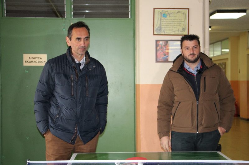 Ένα νέο τραπέζι του πινγκ-πονγκ για τους μαθητές στο 16ο Δημοτικό Σχολείο Χανίων, χάρισαν ο Δήμος Χανίων και η Διαδημοτική Επιχείρηση Διαχείρισης Στερεών Αποβλήτων (Δ.Ε.ΔΙ.Σ.Α. Α.Ε. ΟΤΑ). Στην επίσκεψη που πραγματοποίησαν σήμερα το πρωί στο σχολείο ο Αντιδήμαρχος Καθαριότητας, Περιβάλλοντος και Πρασίνου & Πρόεδρος της Δ.Ε.ΔΙ.Σ.Α. ΑΕ, Μιχάλης Τσουπάκης και ο Αντιδήμαρχος αρμόδιος για τα συνεργεία του Δήμου, Γιάννης Νικηφοράκης, προχώρησαν στην παράδοση του νέου αθλητικού εξοπλισμού για τη χρήση του σχολείου.