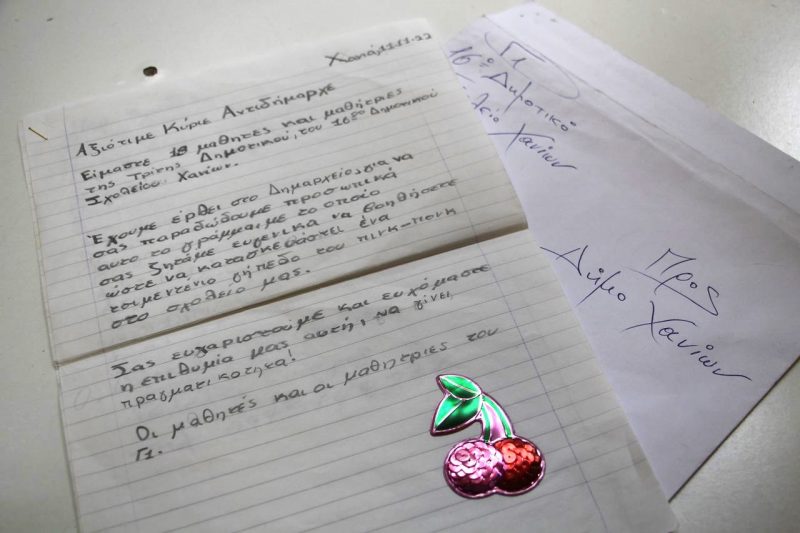Επισημαίνεται ότι το τραπέζι φτιάχτηκε από τα συνεργεία του Δήμου Χανίων σε συνεργασία με τη Δ.Ε.ΔΙ.Σ.Α., εξολοκλήρου από ανακυκλωμένα υλικά. Μάλιστα, σχετικό αίτημα είχαν διατυπώσει οι μικροί μαθητές με επιστολή τους στον Δήμο Χανίων, την οποία είχαν παραδώσει οι ίδιοι στον κ. Τσουπάκη το προηγούμενο διάστημα.