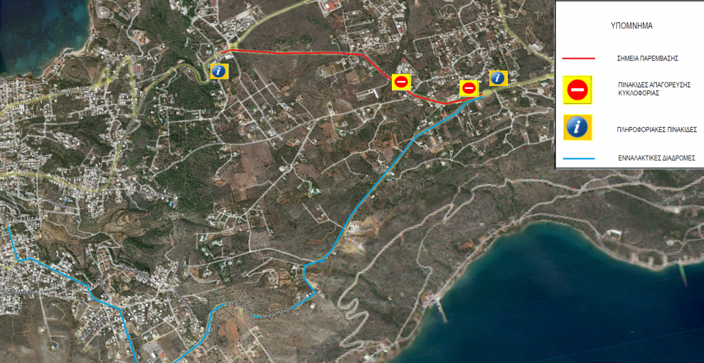 Η κυκλοφορία προς την Πόλη των Χανίων θα διεξάγεται με εκτροπή από την οδό Ακρωτηρίου (Βλητές) και από τις επιμέρους οδούς.