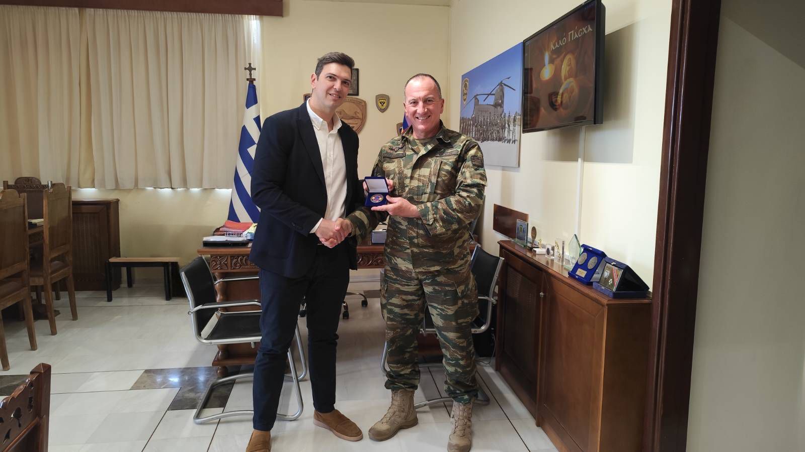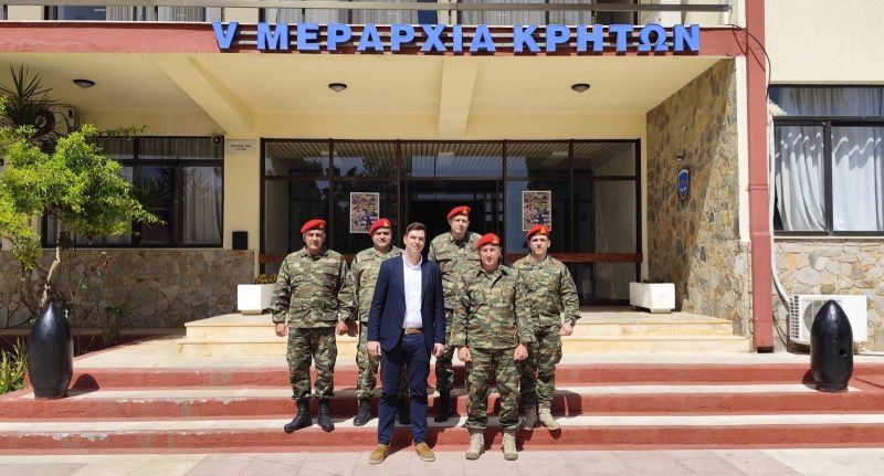 Στην έδρα της 5ης Ταξιαρχίας – Μεραρχίας Κρητών τον βουλευτή Χανίων υποδέχθηκε ο Διοικητής, Ταξίαρχος Νικόλαος Κωστάκης μαζί με αξιωματικούς και στελέχη με τα οποία ο κ. Μαρκογιαννάκης αντάλλαξε ευχές και υπογράμμισε την προτεραιότητα που αποδίδει η κυβέρνηση στην ενίσχυση των ενόπλων δυνάμεων με σύγχρονα εξοπλιστικά μέσα, ώστε να παραμείνουν ικανές και ισχυρές για την εθνική άμυνα.