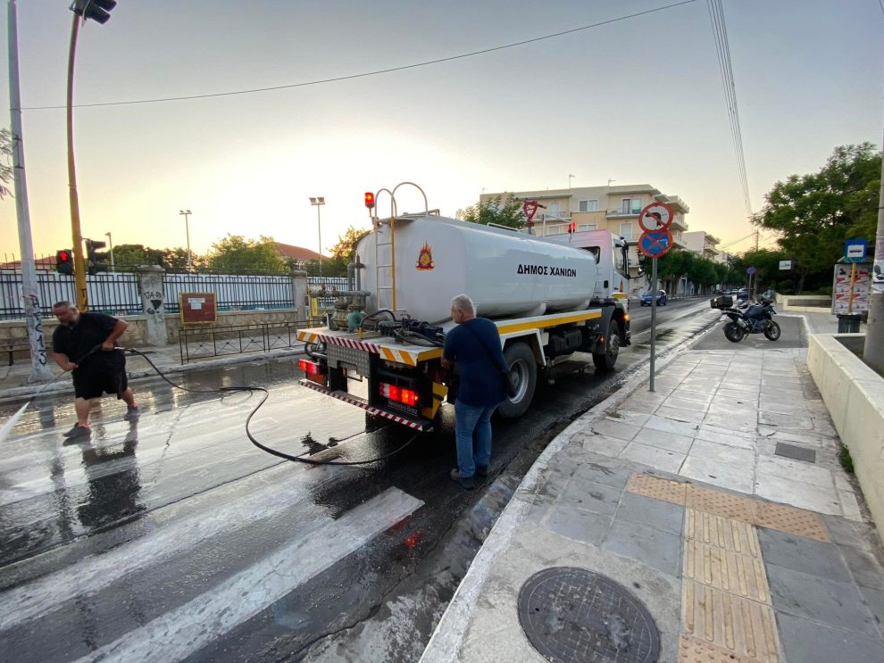 Χανιά: Εργασίες καθαρισμού – πλυσίματος οδών με πλυστικό όχημα υψηλής πίεσης