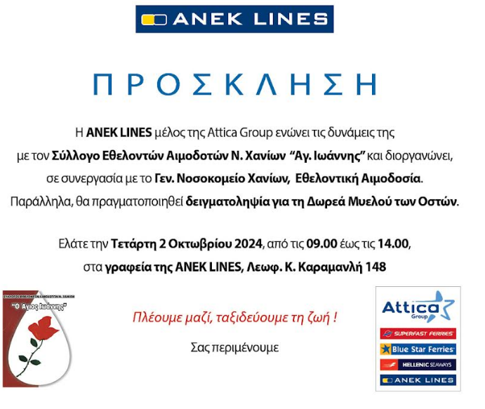 Χανιά: Εθελοντική αιμοδοσία από την ΑΝΕΚ LINES