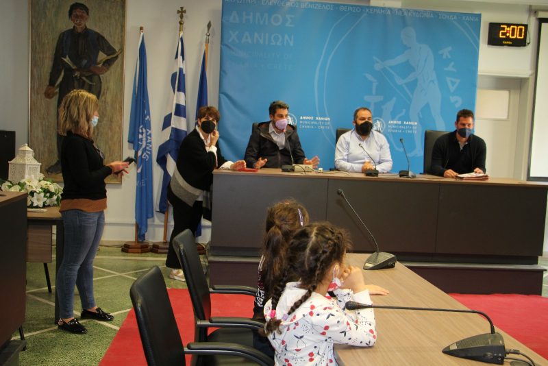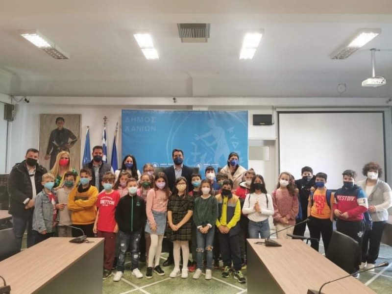 Συγκεκριμένα, παιδιά του 1ου Δημοτικού Σχολείου Μουρνιών επισκέφθηκαν το Δημαρχείο Χανίων νωρίτερα μέσα στην εβδομάδα και είχαν την ευκαιρία να ξεναγηθούν στον χώρο από τον Δήμαρχο Χανίων, Π. Σημανδηράκη αλλά και τους αντιδημάρχους, Αντώνη Βαρδάκη, και Γιάννη Νικηφοράκη, Τάσο Αλόγλου και Ελένη Ζερβουδάκη. Τα παιδιά δώρισαν στον Δήμαρχο χειροποίητες κάρτες και δώρα για το Πάσχα.