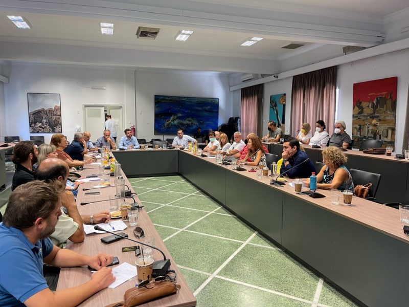 Διευρυμένη σύσκεψη με τη συμμετοχή Δημάρχων και εκπροσώπων όλων των Δήμων της Π.Ε. Χανίων, πραγματοποιήθηκε το πρωί του Σαββάτου 30/07/2022, στο Δημαρχείο Χανίων, για την ενημέρωση σχετικά με ζητήματα που αντιμετωπίζει το Γενικό Νομαρχιακό Νοσοκομείο Χανίων «Ο Αγ. Γεώργιος», από τους εκπροσώπους του υγειονομικού και λοιπού προσωπικού του Ιδρύματος.
