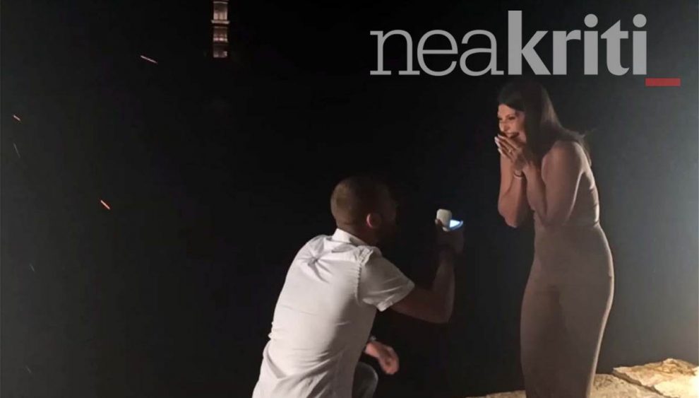 Το ζευγάρι βρέθηκε στα Χανιά για διακοπές και ο νεαρός σκέφτηκε πως δεν υπάρχει καλύτερο μέρος για να κάνει πρόταση γάμου στην αγαπημένη του από το.. γραφικό Λιμάνι των Χανίων.