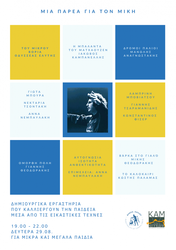 Χανιά: «Φεστιβάλ Μίκης Θεοδωράκης 2022»:«Μια παρέα για τον Μίκη» – Δωρεάν δημιουργικά εργαστήρια για όλους