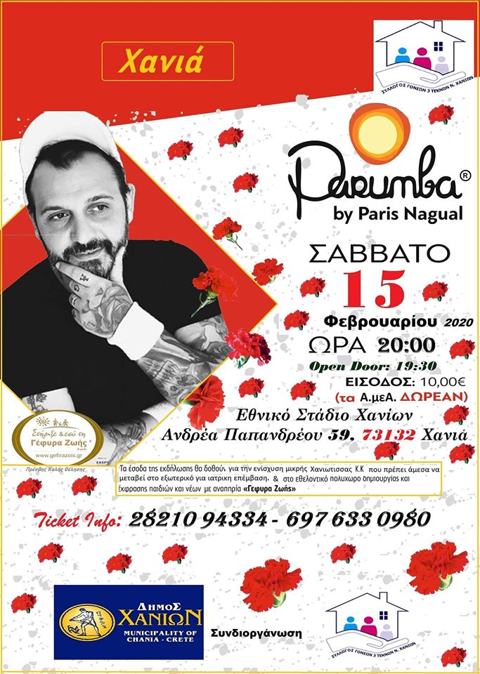 Ο Δήμος Χανίων μαζί με τον Σύλλογο Γονέων και Τριτέκνων Νομού Χανίων διοργανώνει σή,ερα Σάββατο 15 Φεβρουαρίου (8 μ.μ.) φιλανθρωπική εκδήλωση αγάπης για την ενίσχυση μικρής Χανιώτισσας Κ.Κ. που πρέπει άμεσα να μεταβεί στο εξωτερικό για ιατρική επέμβαση καθώς και του εθελοντικού Πολυχώρου δημιουργίας και έκφρασης παιδιών και νέων με αναπηρία “ΓΕΦΥΡΑ ΖΩΗΣ”…