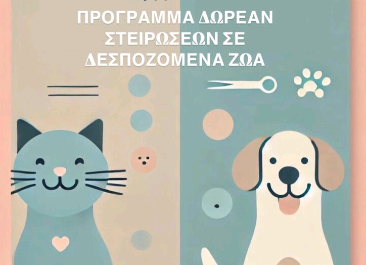 Ο Δήμος Χανίων ενεργοποιεί για ακόμα μια φορά το πρόγραμμα δωρεάν στείρωσης δεσποζόμενων ζώων συντροφιάς πολιτών, οι οποίοι διαμένουν εντός των διοικητικών ορίων του Δήμου Χανίων και ανήκουν στις παρακάτω ευαίσθητες και ευπαθείς κοινωνικές ομάδες: