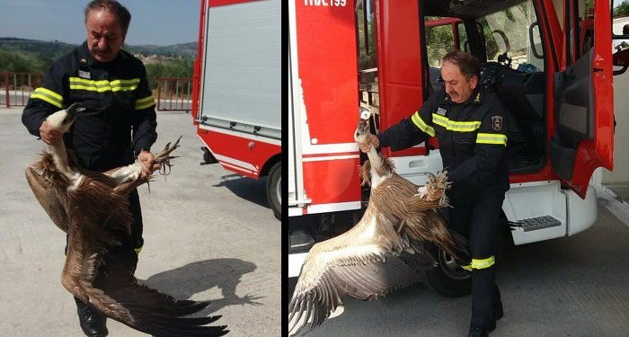 Οι πυροσβέστες περιέλαβαν τον τραυματισμένο και τρομαγμένο γύπα και τον μετέφεραν σε χώρο της πυροσβεστικής υπηρεσίας μέχρι να φτάσει εκεί άνθρωπος του Δασαρχείο Χανίων και να παραλάβει το άγριο πτηνό για την περαιτέρω φροντίδα του.