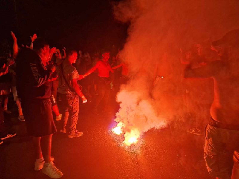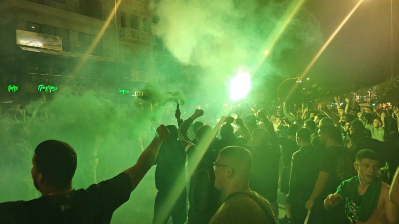 Η κυκλοφορία έχει διακοπεί, με τους φίλους του Παναθηναϊκού να τραγουδούν και να φωνάζουν συνθήματα, ενώ δεν έλειψαν δεκάδες καπνογόνα και πυροτεχνήματα.