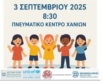 Χανιά: Ημερίδα για τα Δικαιώματα του παιδιού στις 3 Σεπτεμβρίου