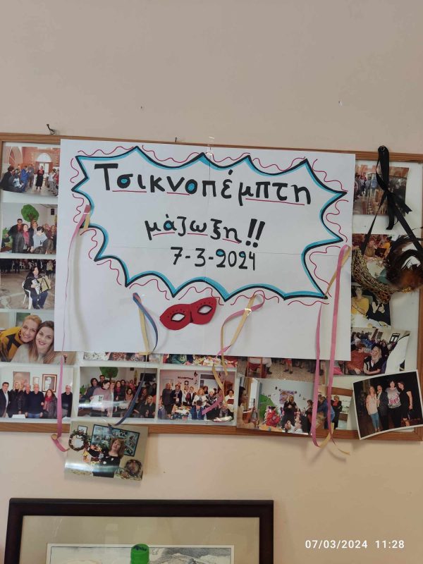 Επισημαίνεται ότι με αφορμή την Τσικνοπέμπτη αλλά και τον εορτασμό της ημέρας της γυναίκας σειρά εκδηλώσεων πραγματοποιήθηκε το τελευταίο διάστημα στο σύνολο των ΚΑΠΗ του Δήμου Χανίων. Οι εκδηλώσεις περιελάμβαναν μεταξύ άλλων: ομιλίες για την αξία της πρόληψης σε θέματα υγείας, που αφορούν στις γυναίκες, καλλωπισμό των γυναικών – μελών των ΚΑΠΗ από την ομάδα του τμήματος αισθητικής του ΕΠΑΛ ΧΑΝΙΩΝ, αποκριάτικες εκδηλώσεις, με πολλές εκπλήξεις, μεταμφιέσεις, χορό και πολλά κεράσματα.