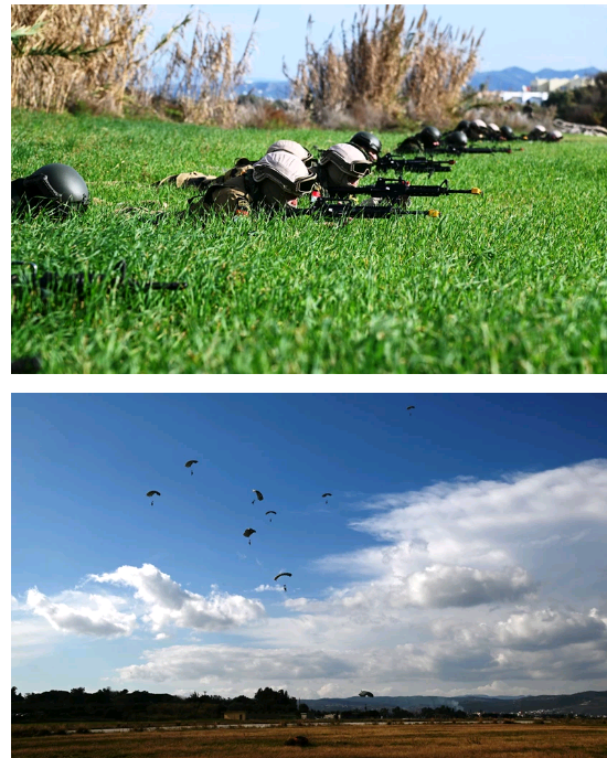 Στη συνέχεια, προσωπικό των Ενόπλων Δυνάμεων αποβιβάζεται με στατικό ιμάντα από ελικόπτερο Chinook CH-47D στον αεροδιάδρομο ενώ στην παραλία διεξάγεται συνδυασμένη αποβατική ενέργεια πεζοναυτών.