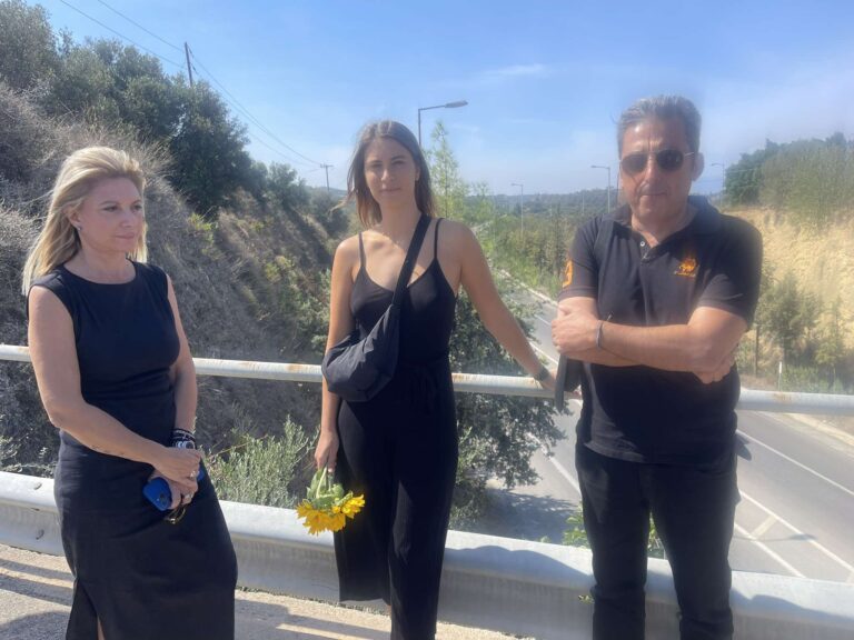 Φόρο τιμής στο σημείο της τραγωδίας με τα τρία νεαρά παιδιά επί του ΒΟΑΚ στο ύψος του Γαλατά στα Χανιά, απέτιναν οι δύο γονείς που έχασαν τα δικά τους παιδιά στο σιδηροδρομικό δυστύχημα των Τεμπών, Μαρία Καρυστιανού και Παύλος Ασλανίδης.