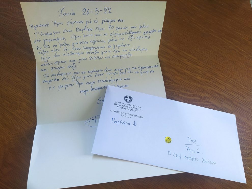 Μια όμορφη πρωτοβουλία πήραν τα παιδιά του 1ου δημοτικού σχολείου Χανίων στέλνοντας γράμματα γεμάτα αγάπη στους ηλικιωμένους τρόφιμους του Δημοτικού γηροκομείου Χανίων.
