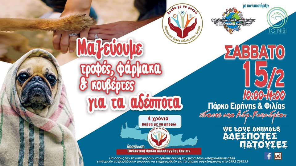 Μια εθελοντική πρωτοβουλία Αγάπης και Αλληλεγγύης από την ομάδα μας με την στήριξη του συλλόγου Η προστασία των ζώων, Χανιά/ Chania animal protection για τα αδέσποτα της πόλης μας…