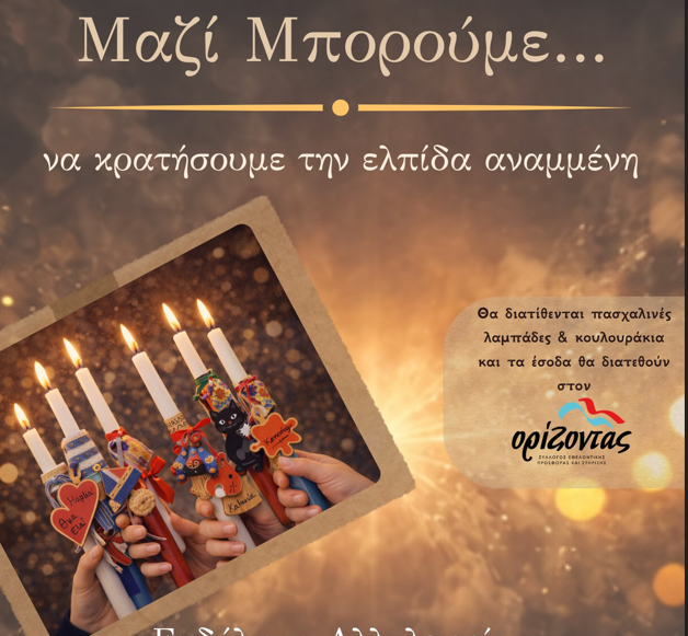 Τα έσοδα θα διατεθούν για την ενίσχυση του συλλόγου «Ορίζοντας», στηρίζοντας το έργο του και το μήνυμα της αλληλεγγύης προς τους συνανθρώπους μας.