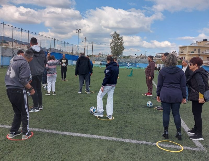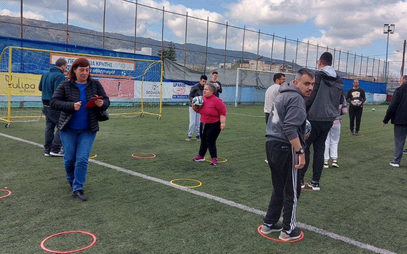 Οι ωφελούμενοι είχαν την ευκαιρία να λάβουν μέρος σε πληθώρα φυσικών δραστηριοτήτων και ασκήσεων, που επιμελήθηκαν οι προπονητές της ποδοσφαιρικής Ακαδημίας Σούδας γεμίζοντας κυριολεκτικά το Γήπεδο της Σούδας με άθληση, γέλιο και χαρά.