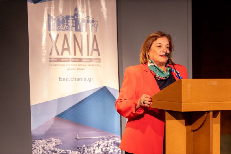 Από τη μεριά της η Προϊσταμένη της Ειδικής Υπηρεσίας Διαχείρισης της Περιφέρειας για το Επιχειρησιακό Πρόγραμμα «ΚΡΗΤΗ», Μαρία Κασωτάκη, έκανε μία ιστορική αναδρομή στον χαιρετισμό της, για την περίοδο συνεργασίας με τις υπηρεσίες του Δήμου Χανίων στα πρώτα έργα ολοκληρωμένης αστικής παρέμβασης. Αναφέρθηκε στη μεγάλη ανάπλαση της ιστορικής συνοικίας της Σπλάντζιας στις αρχές του 2000 και την έκτοτε πορεία σε πολλά μεγάλα έργα που συντελέστηκαν στον Δήμο, ευχαριστώντας τους εργαζόμενους και τους συνεργάτες στις δημοτικές υπηρεσίες για τη διαχρονικά καλή σχέση που έχουν δημιουργήσει.