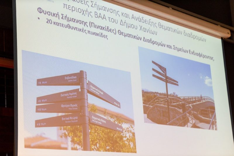 Για τις δράσεις ηλεκτρονικών υπηρεσιών στους τομείς Πολιτισμού – Τουρισμού του Δήμου, μίλησε η Προϊσταμένη της Δ/νσης Προγραμματισμού, Οργάνωσης και Πληροφορικής Δήμου Χανίων, Σεβαστή Πολυχρονάκη παρουσιάζοντας και την εφαρμογή τους στην πόλη των Χανίων, από τις θεματικές διαδρομές, μέχρι τις πινακίδες πληροφόρησης και τα καινοτόμα, ψηφιακά εργαλεία που αναπτύχθηκαν.