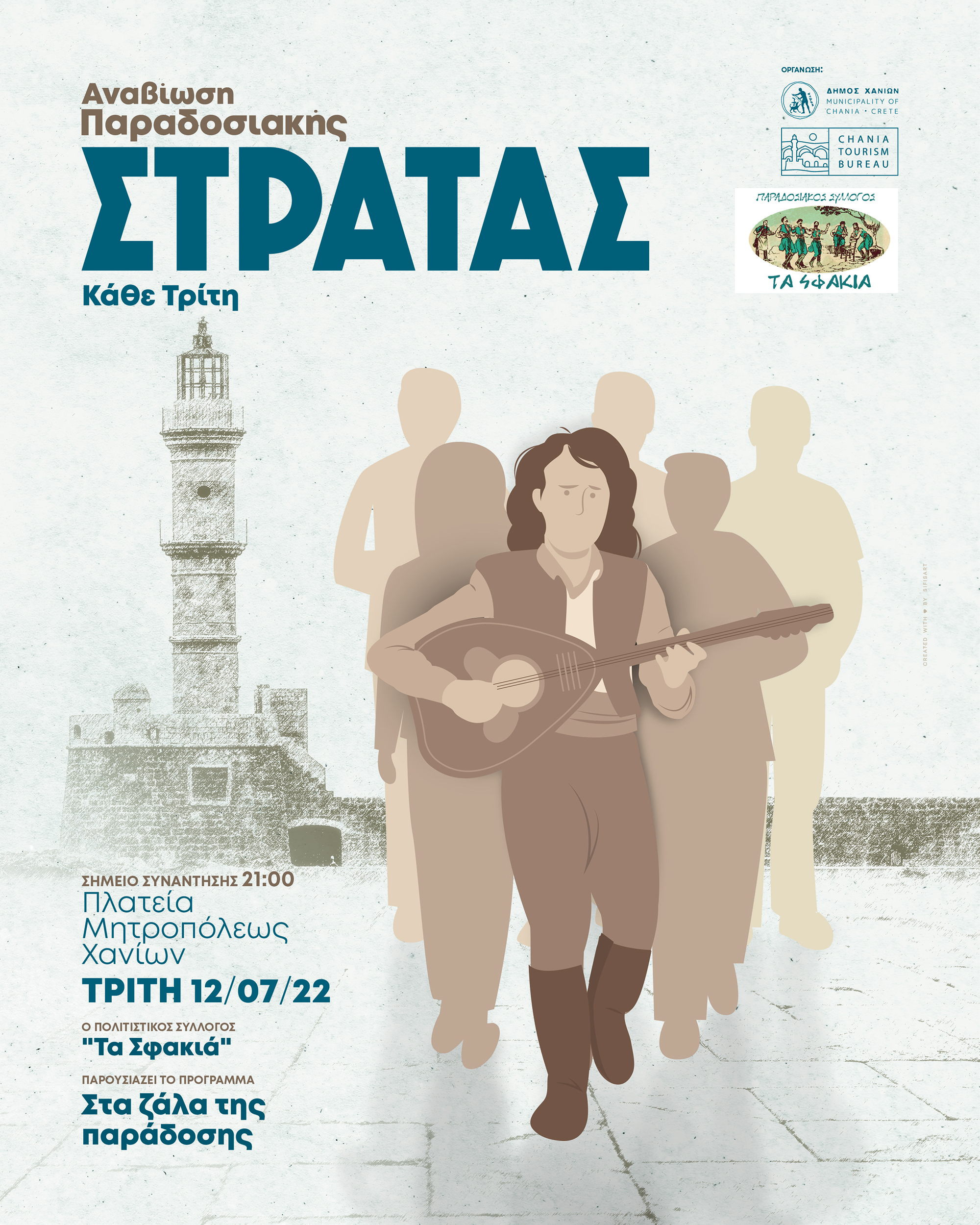Με μεγάλη επιτυχία και συμμετοχή εκατοντάδων Χανιωτών αλλά και τουριστών, πραγματοποιείται κάθε Τρίτη,τα βράδια του καλοκαιριού, η αναβίωση του μουσικοχορευτικού δρώμενου της “Παραδοσιακής Στράτας”, από τον Δήμο Χανίων.