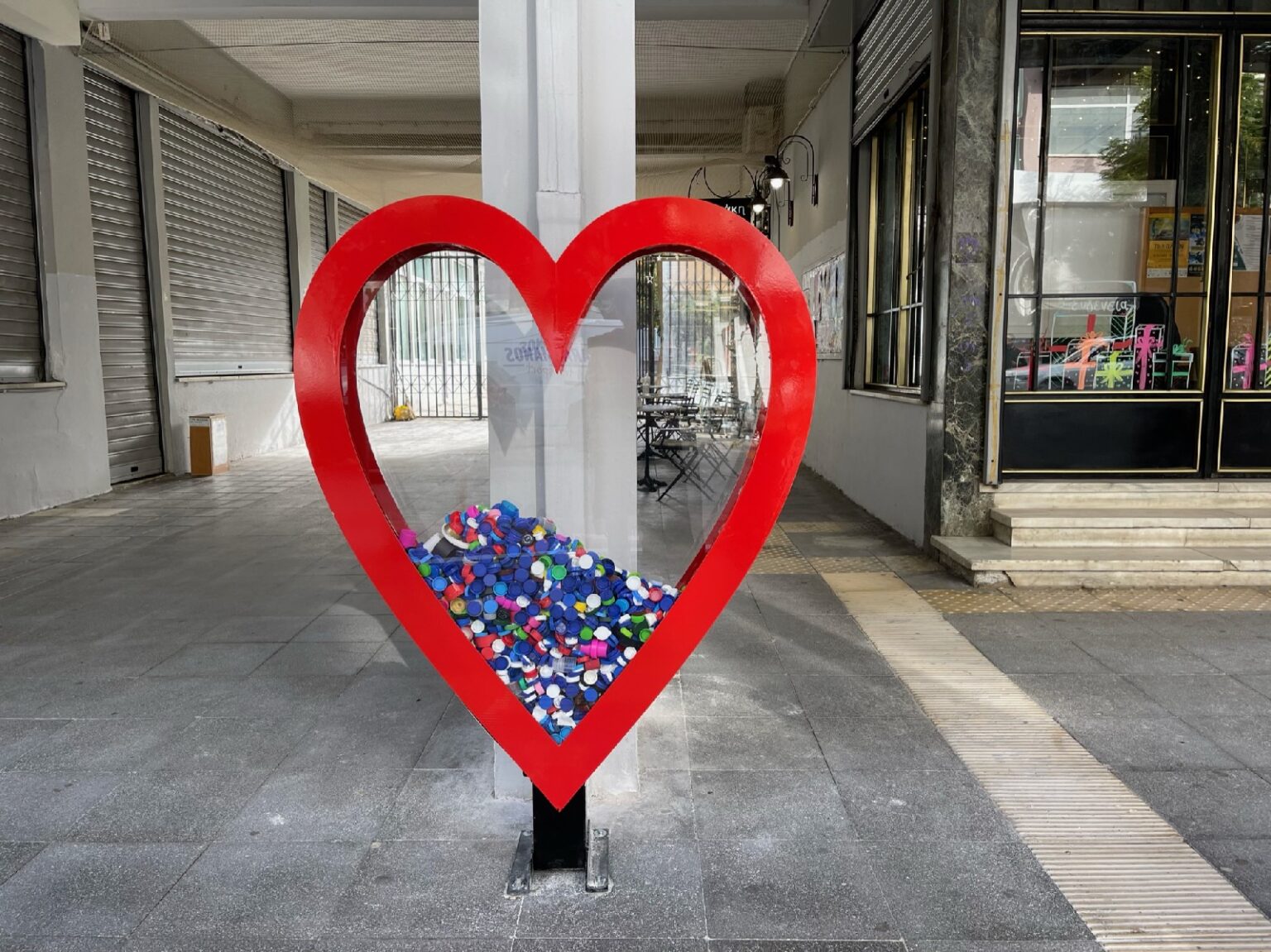 Τέσσερις μεγάλες, χειροποίητες καρδιές έχουν τοποθετηθεί σε κεντρικά σημεία του Δήμου Χανίων, συγκεντρώνοντας πλαστικά καπάκια για καλό σκοπό.