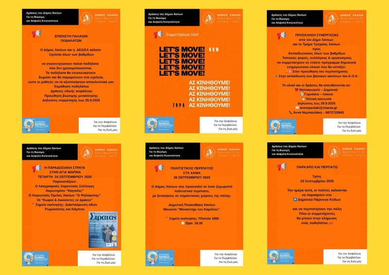Με αφορμή την Ημέρα Χωρίς Αυτοκίνητο και την ολοκλήρωση της Ευρωπαϊκής Εβδομάδας Κινητικότητας 2025, ο Δήμος Χανίων παρουσιάζει τη νέα πρωτοβουλία του με τίτλο «Move it Now – Ας κινηθούμε τώρα», η οποία ανακοινώθηκε στην έναρξη της προηγούμενης εβδομάδας και φιλοδοξεί να αποτελέσει μια δράση με διάρκεια και ουσία.