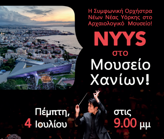 Mουσική παράσταση της Συμφωνικής Ορχήστρας Νέων της Νέας Υόρκης θα πραγματοποιηθεί στο Αρχαιολογικό Μουσείο Χανίων, την Πέμπτη 4 Ιουλίου 2024 στις 9 – 10.15 μμ.