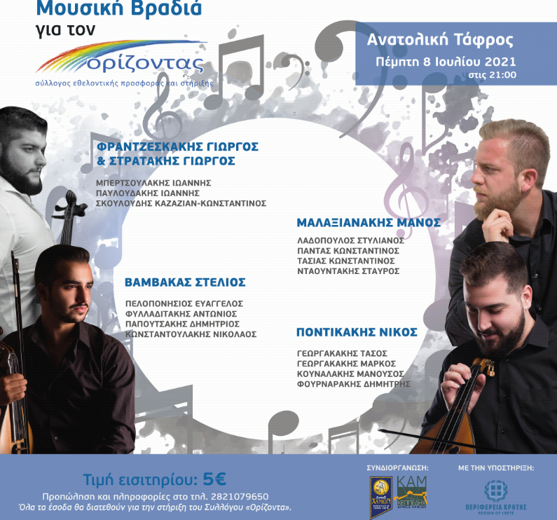 Ο Σύλλογος «Ορίζοντας» διοργανώνει συναυλία την Πέμπτη 8 Ιουλίου στις 21:00 στο Θέατρο Ανατολικής Τάφρου.