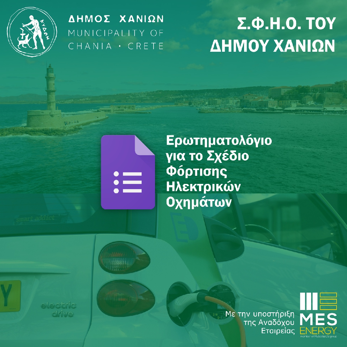 Ο Δήμος Χανίων, είναι έτοιμος να εκκινήσει τη νέα εποχή της ηλεκτροκίνησης στην πόλη, και το τελευταίο διάστημα, εκπονεί το Σχέδιο Φόρτισης Ηλεκτρικών Οχημάτων (Σ.Φ.Η.Ο), ως οφείλει βάσει της κείμενης νομοθεσίας.