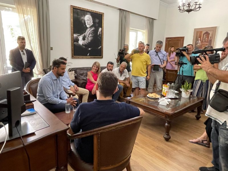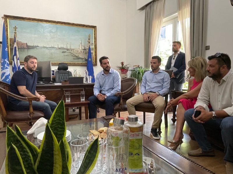 Τον Πρόεδρο του ΠΑ.ΣΟ.Κ.-Κινήματος Αλλαγής, Νίκο Ανδρουλάκη υποδέχτηκε στο γραφείο του στο Δημαρχείο, ο Δήμαρχος Χανίων, Παναγιώτης Σημανδηράκης, το μεσημέρι της Δευτέρας, 01/08/2022.