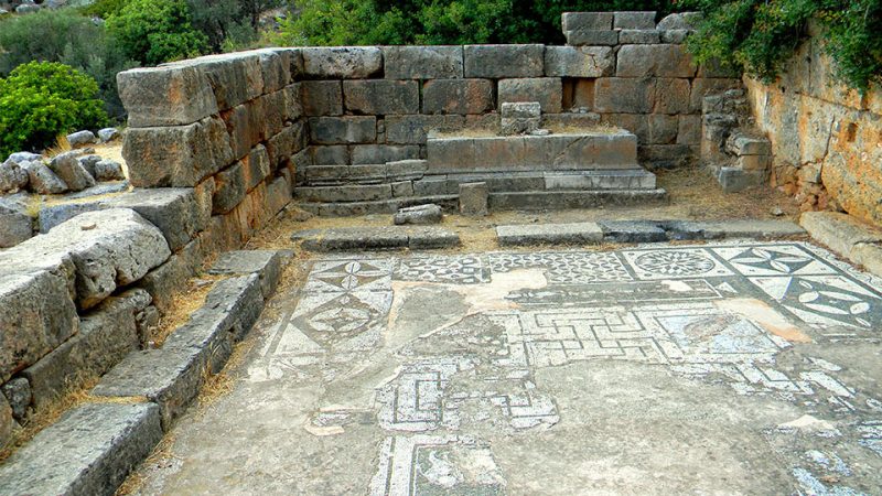 Ιδιαίτερα εντυπωσιακά, τα χρωματιστά ψηφιδωτά του Θεραπευτηρίου που αναπαριστούν γεωμετρικά σχήματα και παραστάσεις ζώων.