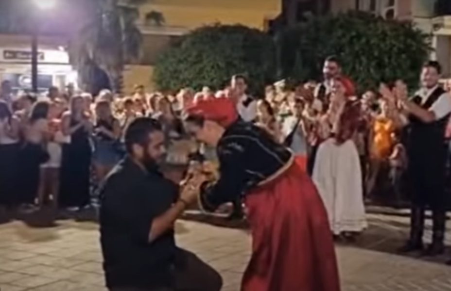 Ένας άνδρας έκανε πρόταση γάμου στην αγαπημένη του, χορεύτρια του Λαογραφικού Χορευτικού Ομίλου Χανίων «Το αντάμωμα», στο Ενετικό Λιμάνι.