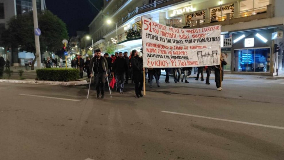 Φοιτητές, σύλλογοι, σωματεία και πολίτες συγκεντρώθηκαν το απόγευμα στην πλατεία της Δημοτικής Αγοράς Χανίων για την επέτειο των 51 χρόνων από την εξέγερση του Πολυτεχνείου.