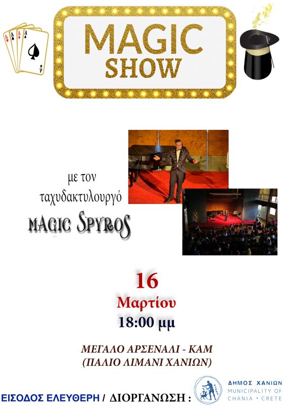 O αγαπημένος των παιδιών Magic Spyros προσκαλεί τους μικρούς και μεγάλους φίλους στην πιο κεφάτη αποκριάτικη μαγική παράσταση για όλη την οικογένεια! Είσοδος Ελεύθερη
