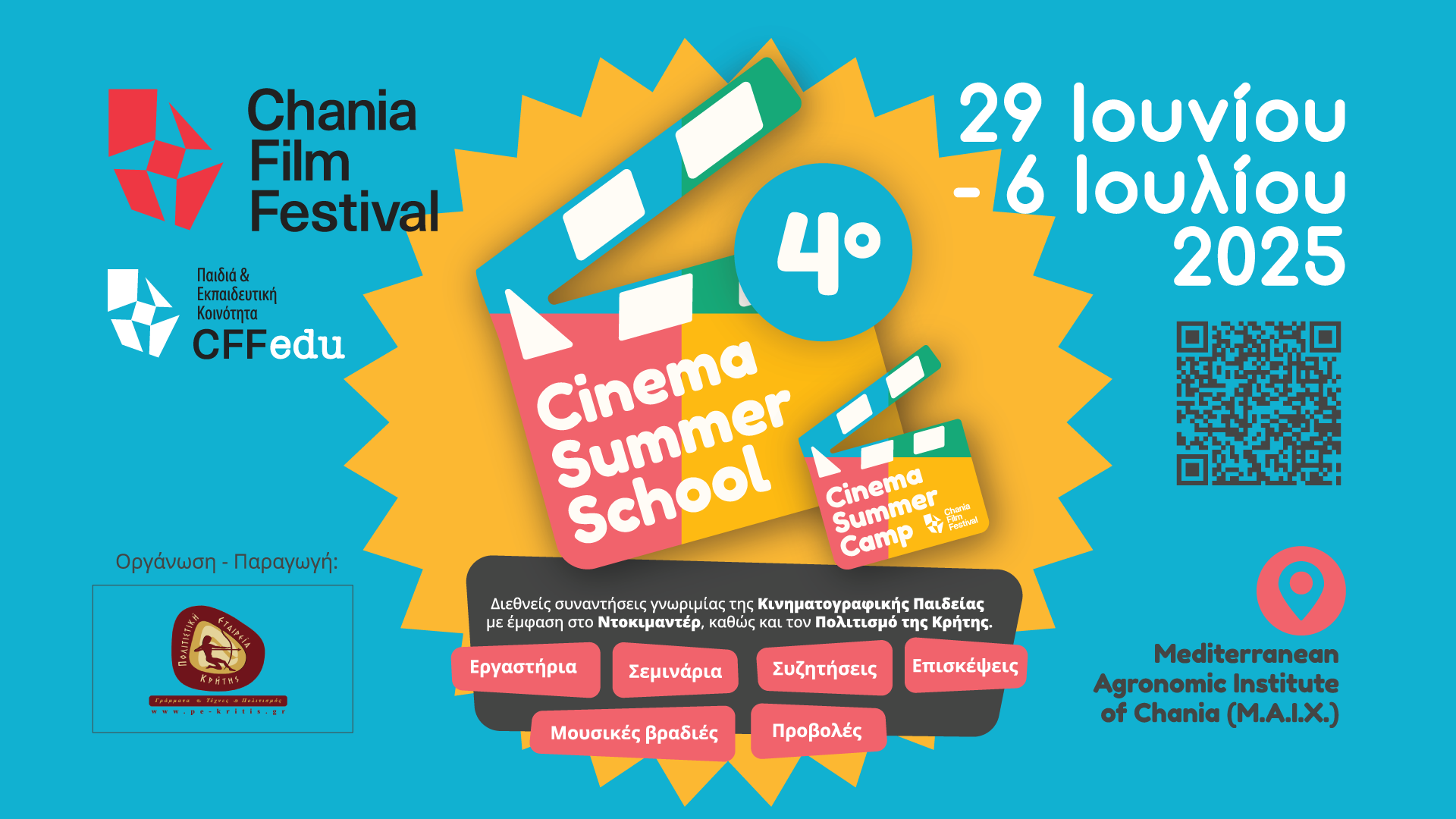 Για 8 μέρες 30 έφηβοι/ες ( μαθητές Γ΄ Γυμνασίου, Α΄και Β΄Λυκείου) από όλη την Ελλάδα και το εξωτερικό συνυπάρχουν στο Μεσογειακό Αγρονομικό Ινστιτούτο Χανίων σε μια διεθνή συνάντηση γνωριμίας με την κινηματογραφική παιδεία με έμφαση στο Ντοκιμαντέρ, αλλά και τον Πολιτισμό της Κρήτης.