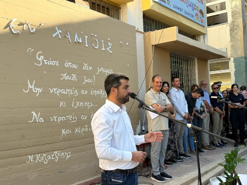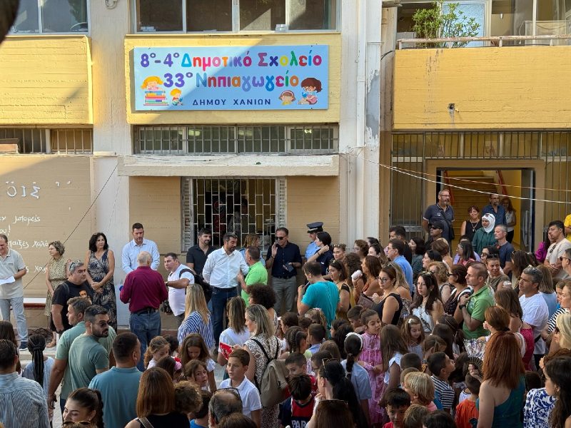Ο Δήμαρχος Χανίων ευχήθηκε στους μαθητές και τις οικογένειές τους «Καλή εποικοδομητική χρονιά, χωρίς απρόοπτα και δυσκολίες που θα επιτρέψει στα παιδιά μας να γίνουν καλύτεροι πολίτες και πιο ελεύθερες προσωπικότητες». Αναφέρθηκε, επίσης, στη διαρκή και εντατική προσπάθεια που καταβάλλεται κάθε καλοκαίρι από τις υπηρεσίες και τα συνεργεία του Δήμου, ώστε όλο και περισσότερα σχολεία να εκσυγχρονίζονται και να βελτιώνονται πριν το πρώτο κουδούνι.