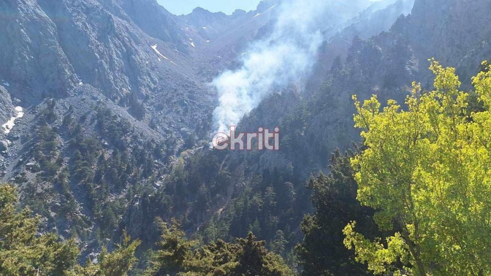 Ρίψεις ξεκίνησε να πραγματοποιεί λίγο μετά τις 8 το πρωί το πυροσβεστικό ελικόπτερο, στην περιοχή της φωτιάς που κατακαίει δασώδη και θαμνώδη έκταση όμορα του Φαραγγιού της Σαμαριάς και συγκεκριμένα σε πολύ δύσβατη ορεινή περιοχή μεταξύ Ξυλόσκαλου και Γκίγκιλου.