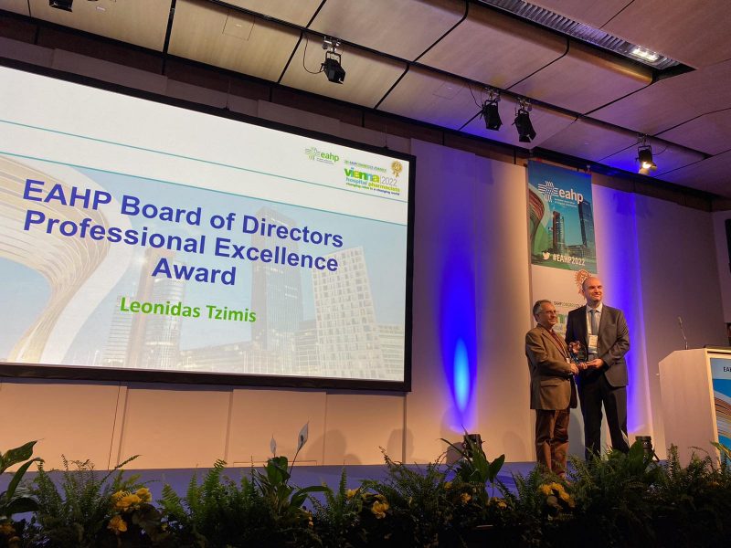 Συγκεκριμένα στο Πανευρωπαϊκό Συνέδριο της EAHP (European Association of Hospital Pharmacists – Ευρωπαϊκή Ένωση Νοσοκομειακών Φαρμακοποιών) που διεξήχθη στη Βιέννη από τις 23 έως τις 25 Μαρτίου 2022, απονεμήθηκε στον Δρ. Λεωνίδα Τζίμη το πρώτο Βραβείο Επαγγελματικής Αριστείας.