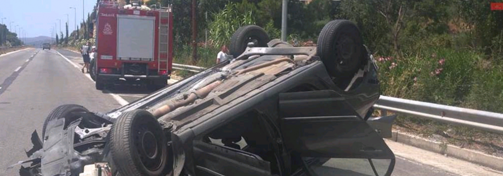 Το όχημα ανετράπη στην εθνική οδό στο ύψος του κόμβου του Ταυρωνίτη με τον 55χρονο οδηγό να εγκλωβίζεται στο όχημα.