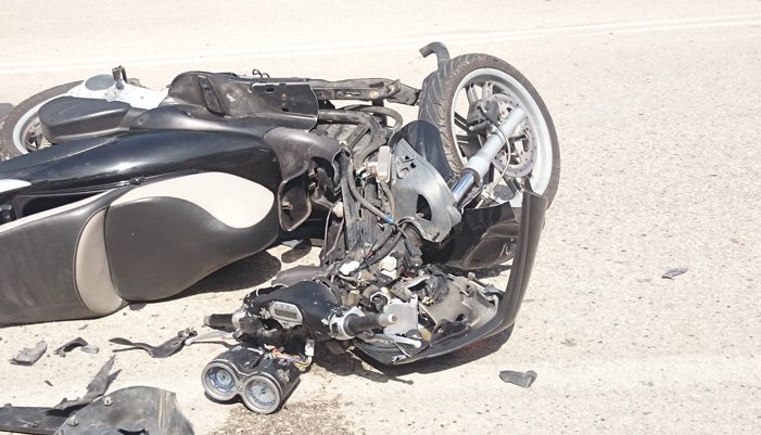Η σύγκρουση ήταν σφοδρή με αποτέλεσμα να τραυματιστούν σοβαρά οι δυο αναβάτες του δικύκλου, ηλικίας περίπου 25 ετών.