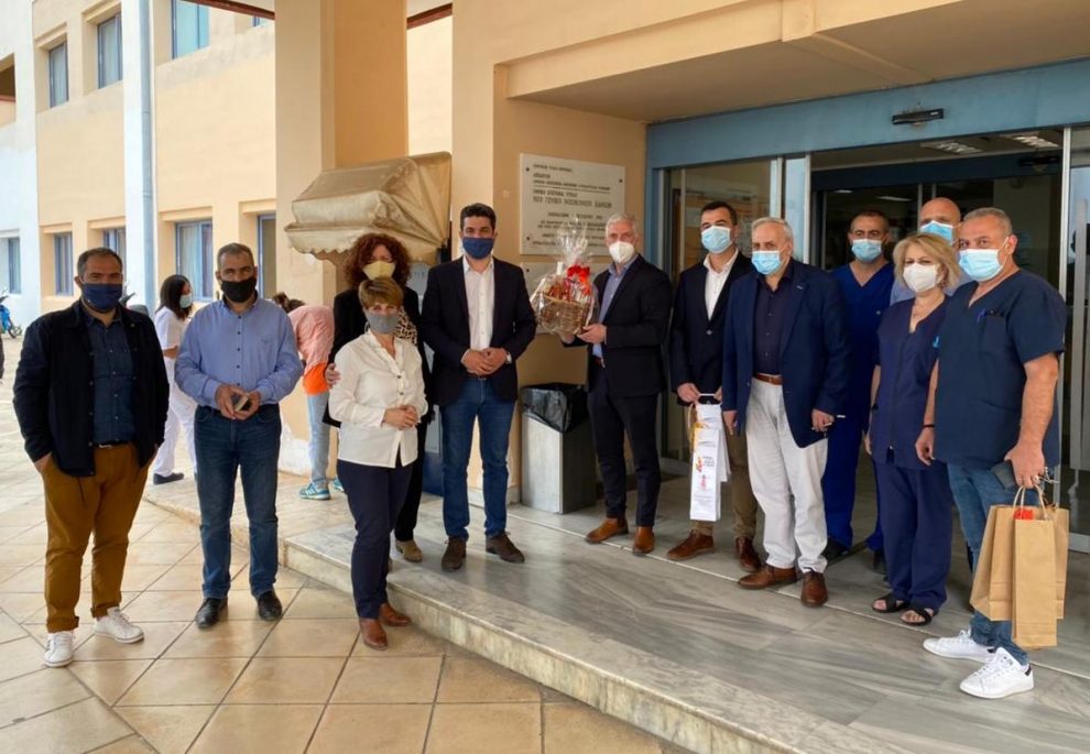Στο περιθώριο της επίσκεψης ο Δήμαρχος Χανίων, Παναγιώτης Σημανδηράκης, προσέφερε συμβολικά λαμπάδες και γλυκίσματα και δήλωσε: « Πέρα από τις ευχές για καλό Πάσχα, νιώθουμε την ανάγκη να πούμε ένα μεγάλο ευχαριστώ εκ μέρους της κοινωνίας των Χανίων, στο σύνολο του ιατρικού, νοσηλευτικού, διοικητικού και λοιπού προσωπικού του Νοσοκομείου μας, για την υπερπροσπάθεια που κάνουν εδώ και περισσότερο από έναν χρόνο. Κάτω από αντίξοες συνθήκες, προσπαθούν να μας κρατήσουν “όρθιους” με ασφάλεια και εμείς τώρα με την ατομική υπευθυνότητα, βοηθάμε το σπουδαίο έργο που επιτελούν. Τους βοηθάμε και τους υποστηρίζουμε, με την εφαρμογή των οδηγιών που δίνουν οι ειδικοί, αλλά και ακολουθώντας τον προγραμματισμό για τους εμβολιασμούς. Καλούμε όλους, να κάνουν αυτό που πρέπει για να ορθώσουμε τείχος προστασίας, για εμάς, τις οικογένειές μας αλλά και την κοινωνία μας».