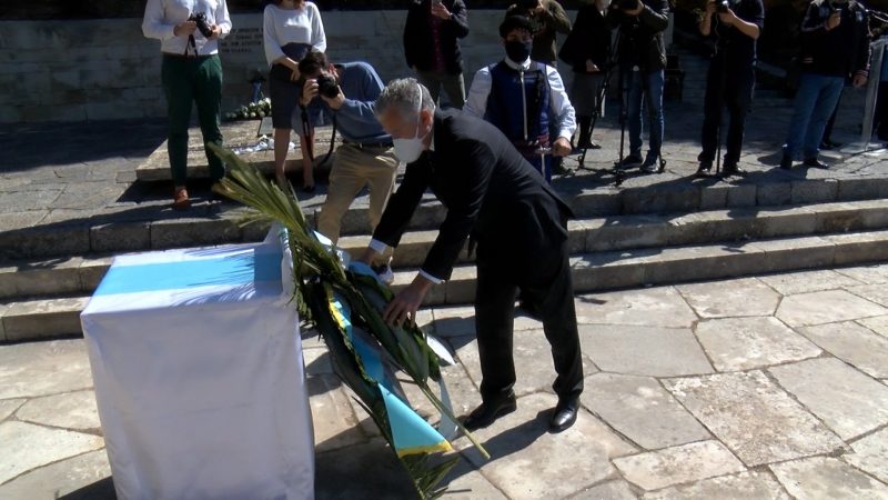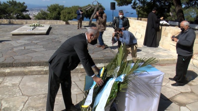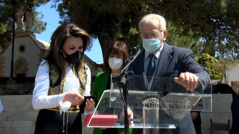 Στην τελετή, εκτός των άλλων, κατέθεσαν κοινό στεφάνι από τους τον Αντιπεριφερειάρχη, τον Δήμαρχο Χανίων και τον Πρόεδρο του Εθνικού Ιδρύματος Ερευνών και Μελετών «Ελευθέριος Κ. Βενιζέλος».