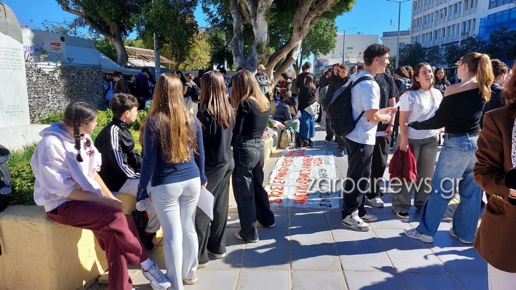 Συλλαλητήριο πραγματοποίησαν μαθητές και φοιτητές των Χανίων, σήμερα το πρωί, Πέμπτη 26/02, και ώρα 10:00, στην Πλατεία Δημοτικής Αγοράς, διαμαρτυρόμενοι για το Εθνικό Απολυτήριο που είναι προ των πυλών από την κυβέρνηση, αλλά και για το εκπαιδευτικό σύστημα γενικότερα, για την ιδιωτικοποίηση των Πανεπιστημίων και τις εστίες που φτιάχνονται στο Πολυτεχνείο Κρήτης από ιδιώτες με αποτέλεσμα οι φοιτητές να αναγκάζονται να πληρώνουν ενοίκιο, αλλά και για να σταθούν πιστοί στην υπόσχεση που έδωσαν να μην συγκαλυφθεί το έγκλημα των Τεμπών.