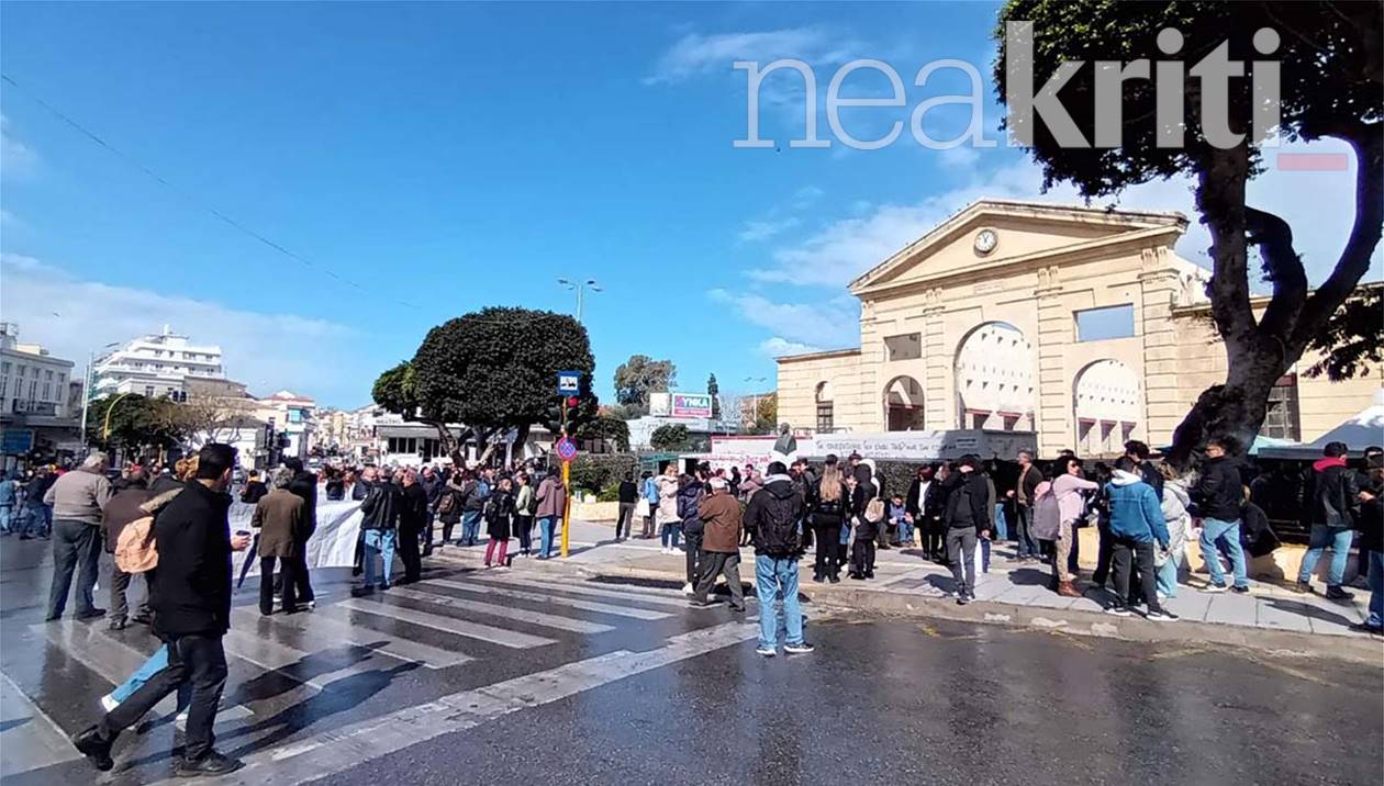 Συγκέντρωση διαμαρτυρίας πραγματοποιούν σήμερα Πέμπτη 16 Μαρτίου, πολίτες, σωματεία, φορείς και άλλοι σύλλογοι στην πλατεία της Δημοτικής Αγοράς στα Χανιά, στο πλαίσιο της 24ωρης γενικής απεργίας της ΓΣΕΕ και της ΑΔΕΔΥ, για το σιδηροδρομικό δυστύχημα στα Τέμπη.