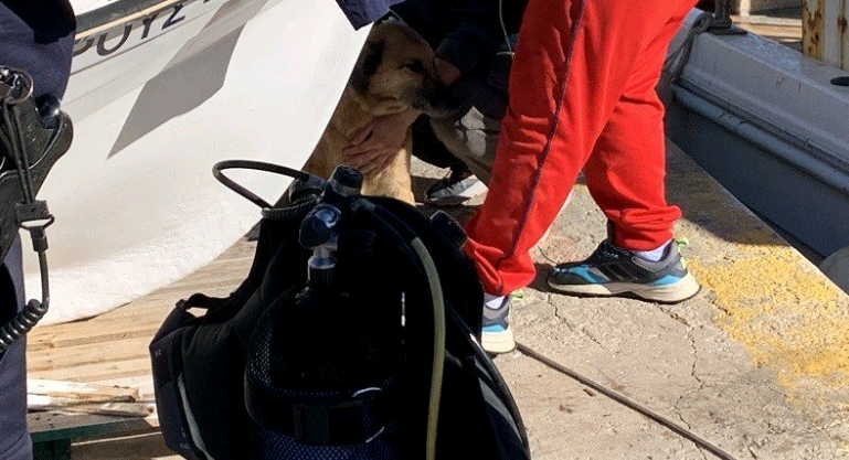 Ο σκύλος μεταφέρθηκε με ασφάλεια στην ακτή, ωστόσο ήταν φοβισμένος και κοιτούσε συνεχώς το σημείο όπου βυθίστηκε το σκάφος. όπως αναφέρει το flashnews.gr.
