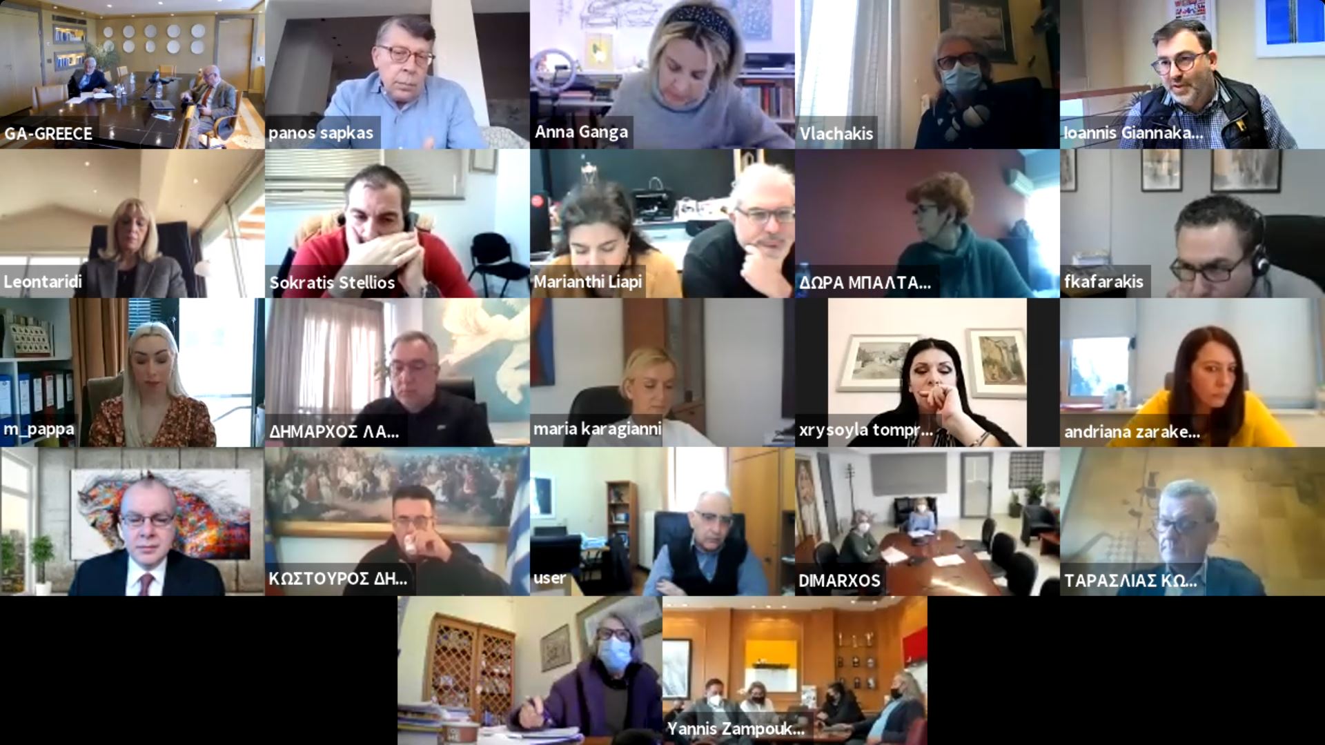 Διαδικτυακή συνάντηση πραγματοποιήθηκε μεταξύ εκπροσώπων Δήμων της χώρας και του Εκτελεστικού Γενικού Συντονιστή της Εθνικής Επιτροπής «Ελλάδα 2021», κ. Μάρτων Σίμιτσεκ, με θέμα τον συντονισμό δράσης για την προβολή ειδικού υλικού με σύγχρονες τεχνικές ψηφιακής αποτύπωσης (mapping) σε εμβληματικά κτίρια της χώρας.