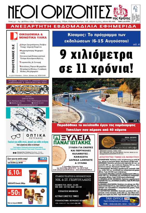 Αύριο, Τρίτη 05/08/2025, ο Σύλλογος Κρητικής Μουσικής «Ο ΧΑΡΧΑΛΗΣ», ο παραδοσιακός σύλλογος Χανίων «ΒΙΓΛΑΤΟΡΕΣ» και η σχολή χορού «ΕΡΩΤΟΚΡΗΤΕΣ» θα παρουσιάσουν το δρώμενο: «Η Στράτα του Ερωτόκριτου».
