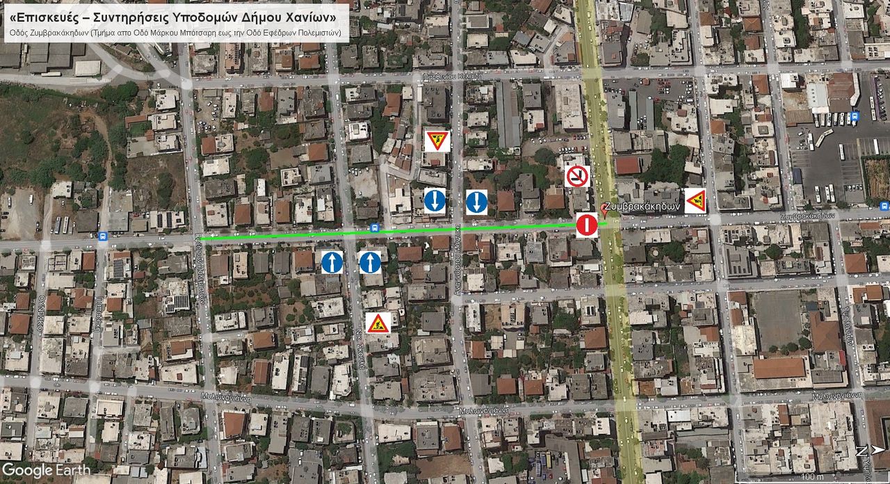 Συγκεκριμένα, από τη Διεύθυνση Τεχνικών Υπηρεσιών του Δήμου Χανίων γνωστοποιείται ότι από τη Δευτέρα 19/06/2023, εργασίες θα πραγματοποιηθούν στην οδό Ζυμβρακάκηδων, στο τμήμα από τη συμβολή της με τη Μάρκου Μπότσαρη έως τη συμβολή με την Εφέδρων Πολεμιστών, όπως φαίνεται στο σχεδιάγραμμα.